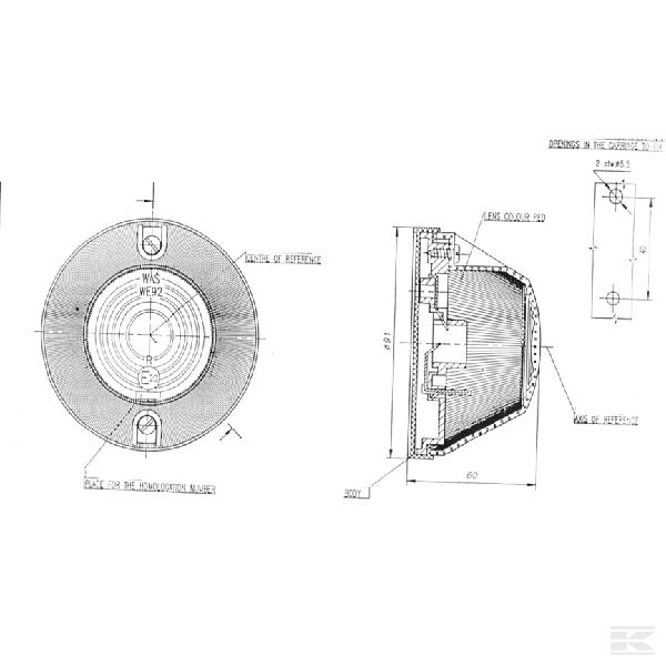 Gabarītlukturis, sarkans, 13 WE-92, 12-24 V