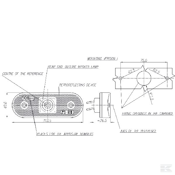 LED Gabarītlukturis, aizmugurējais, 230, 12-24 V