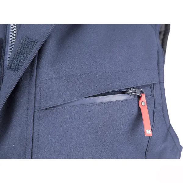 - Divas lielas priekšējās un krūšu kabatas ar ūdensnecaurlaidīgiem rāvējslēdzējiem