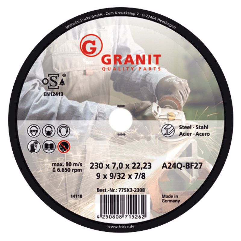 GRANIT metāla slīpēšanas diski, ø 125 x 7 mm, 10 gab