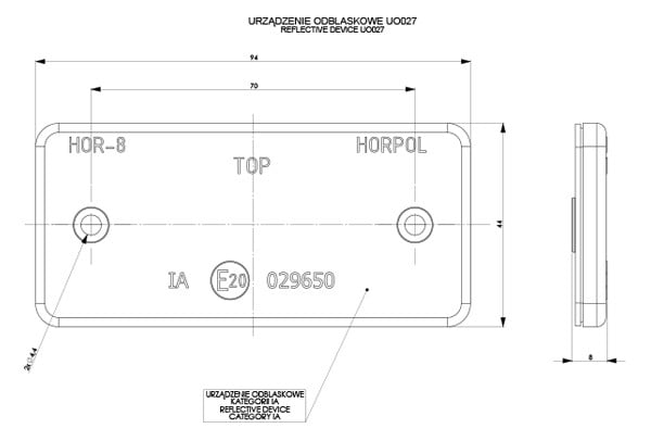 Atstarotājs 44x94mm, oranžs, pieskrūvējams