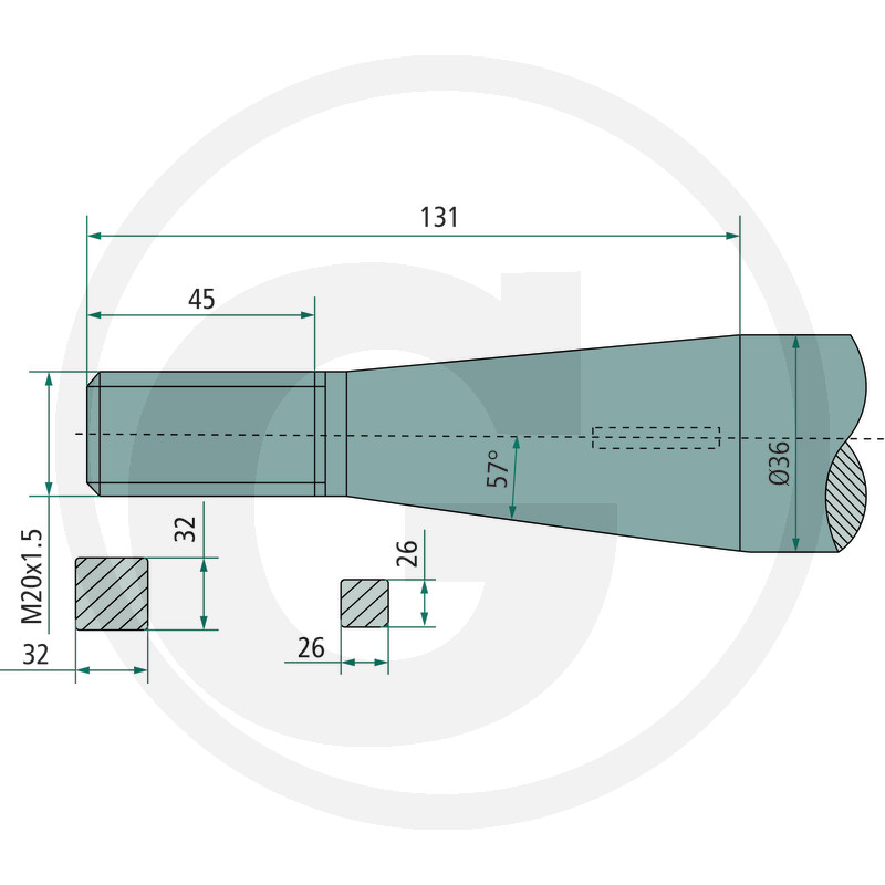 Ieliekts pīķis, M20 x 1,5 mm, kvadrātsveida, konuss K004