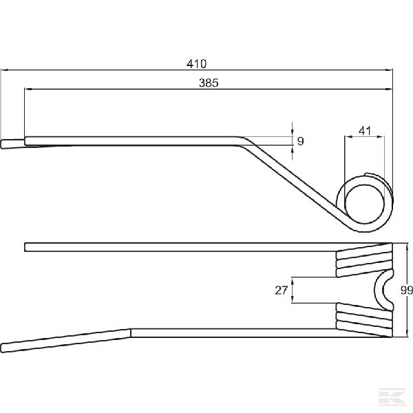 Rotējošā grābekļa zars, 410x99 Ø9 mm