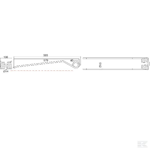 Rotējošā grābekļa zars,520x100 Ø10 mm